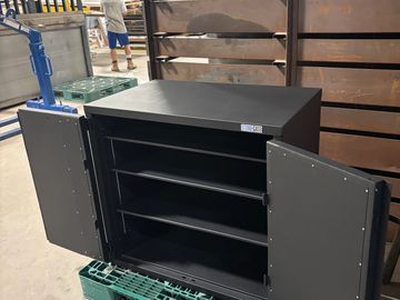 16 Ga. Double Wall Construction, Adjustable Shelves, Sizes are and locking are fully customizable to meet your secure storage needs.